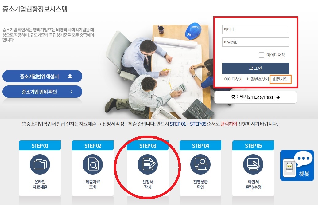 로그인 중소벤처24 EasyPass 중소기업현황정보시스템 중소기업 확인서는 영리기업 또는 비영리 사회적기업을 대상으로 적용하며, 규모기준과 독립성기준을 모두 충족해야 합니다.