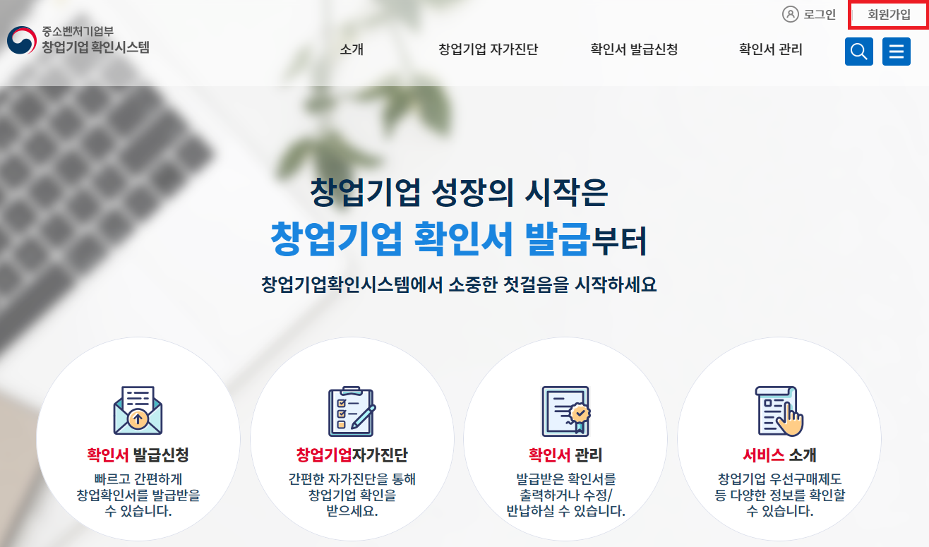◈ 창업기업 확인시스템을 통한 확인서 신청 방법