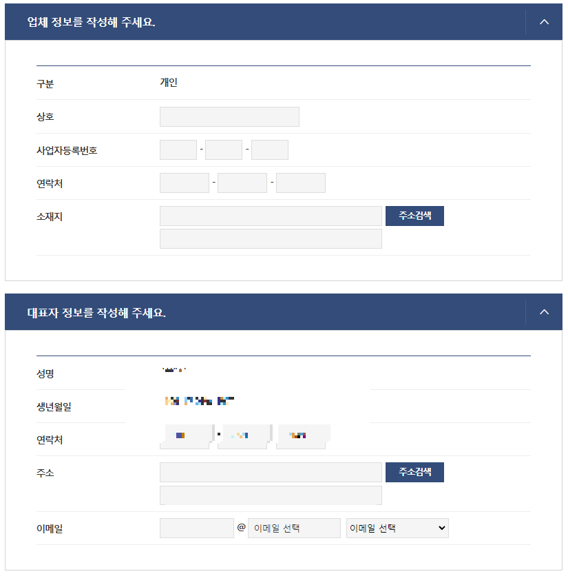 * 사업자등록증, 법인등기사항증명서 등 필수 서류는 행정정보공동이용에 동의하면 담당 공무원이 확인할 수있습니다.