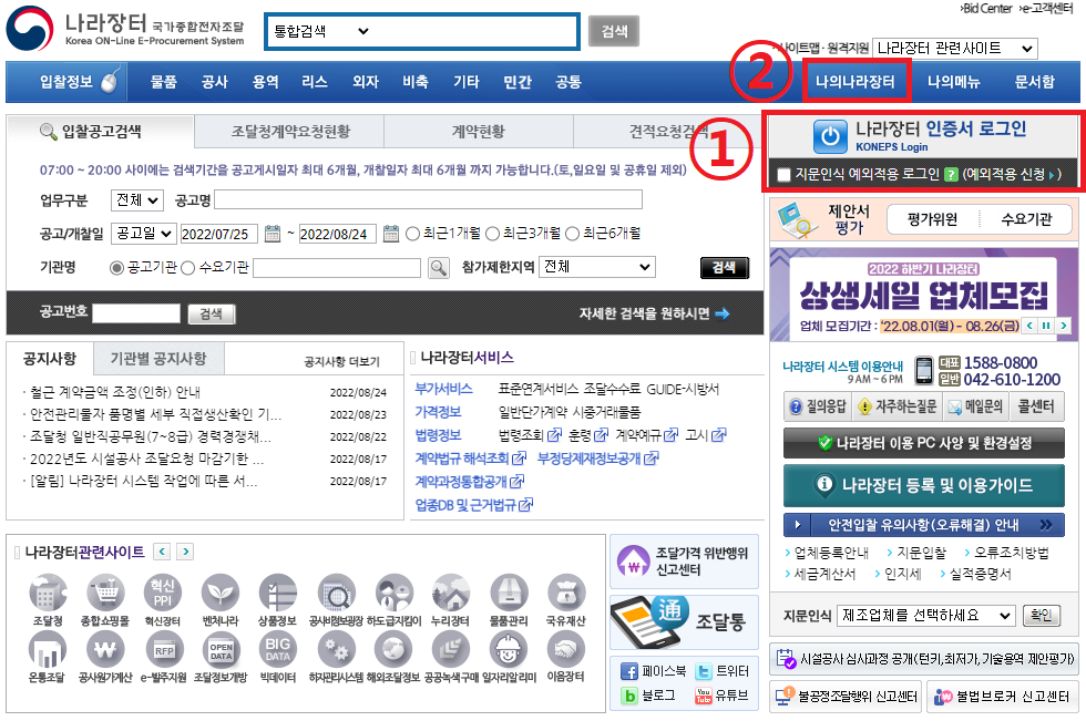 1. 나라장터 로그인 → 나의나라장터