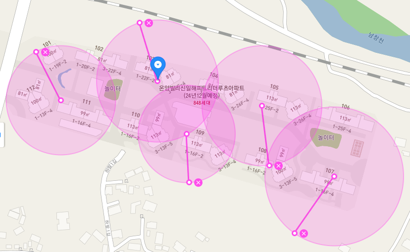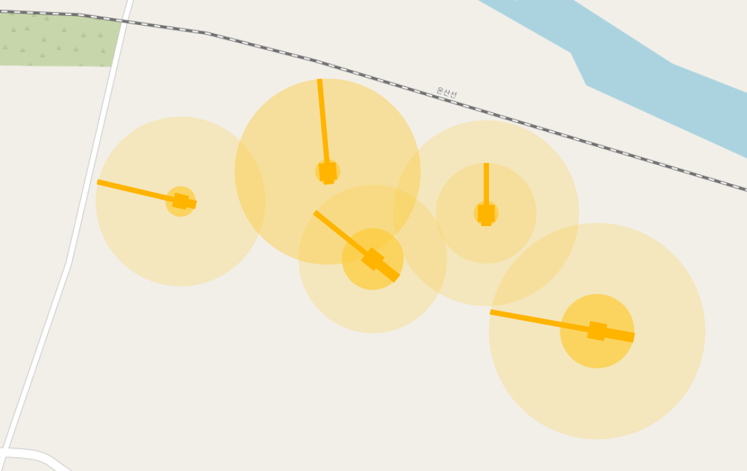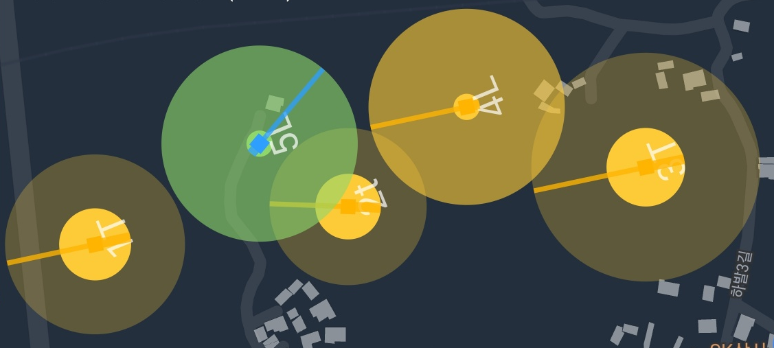 개발내용은 간단하게, 기존에 설정한 제원들과 GPS 기기로 측정한 좌표에 원을 그리는 작업입니다.