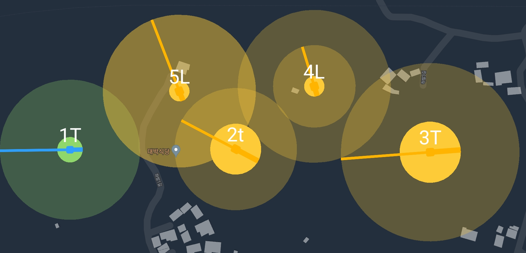 개발내용은 간단하게, 기존에 설정한 제원들과 GPS 기기로 측정한 좌표에 원을 그리는 작업입니다.