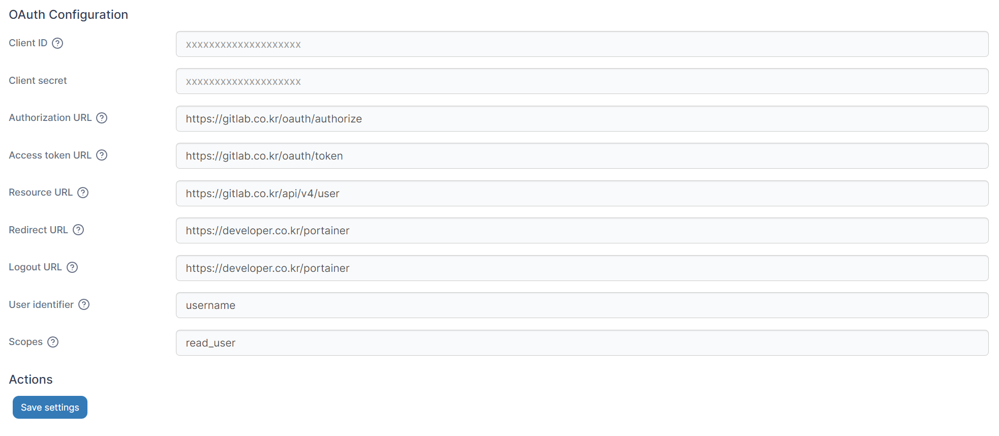 | Client secret | gitlab에서 생성한 Application의 Secret |