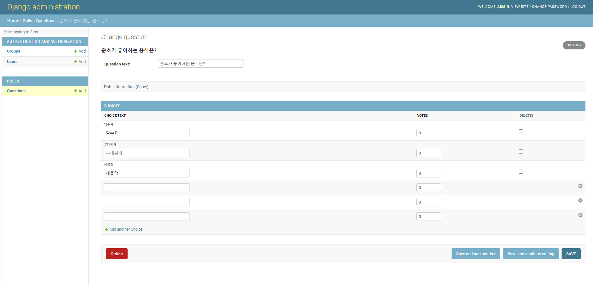 관리자 페이지에서 데이터를 추가하고, 관련 메서드를 통해 해당 Table을 Update 해보면서
